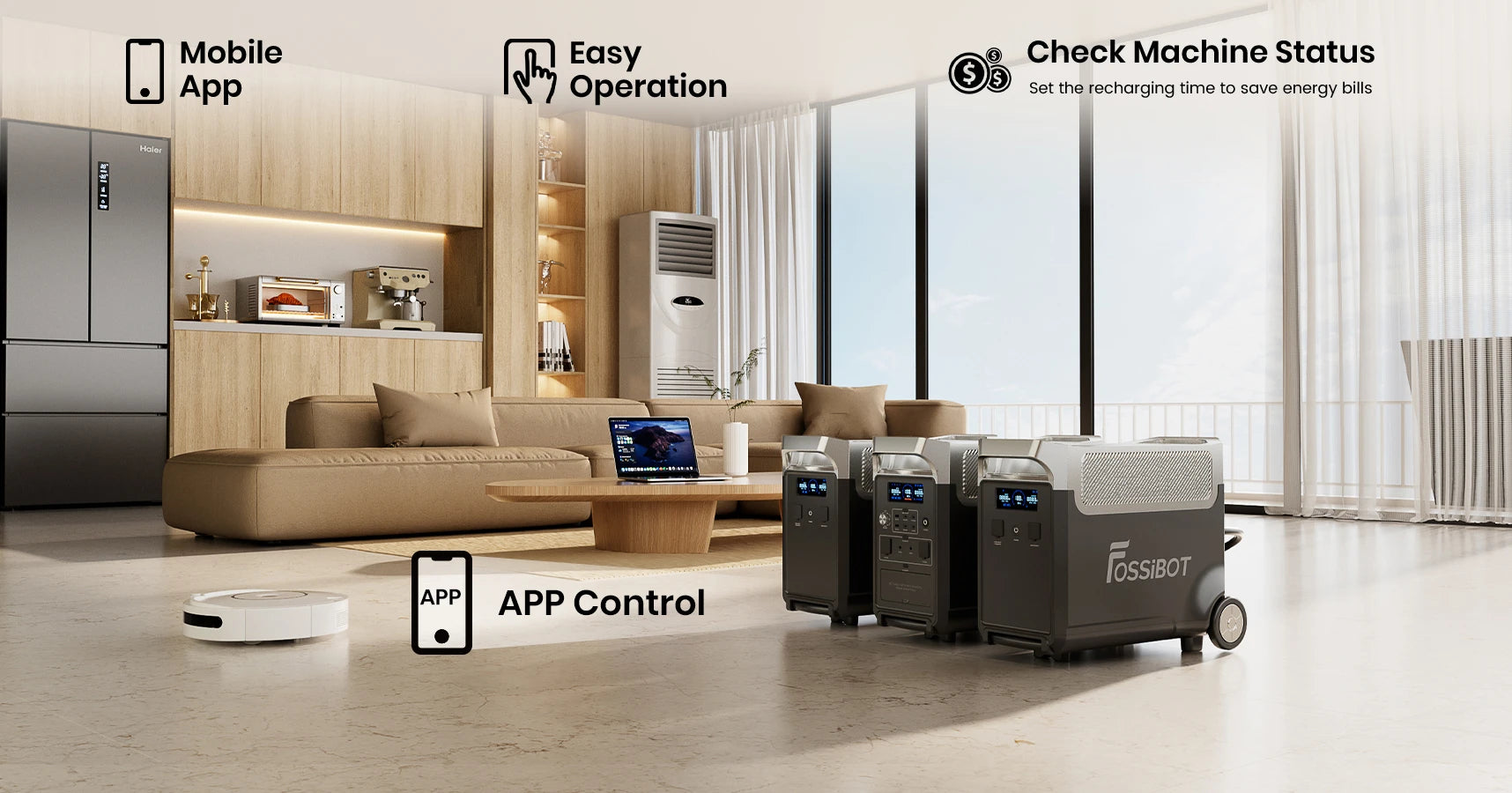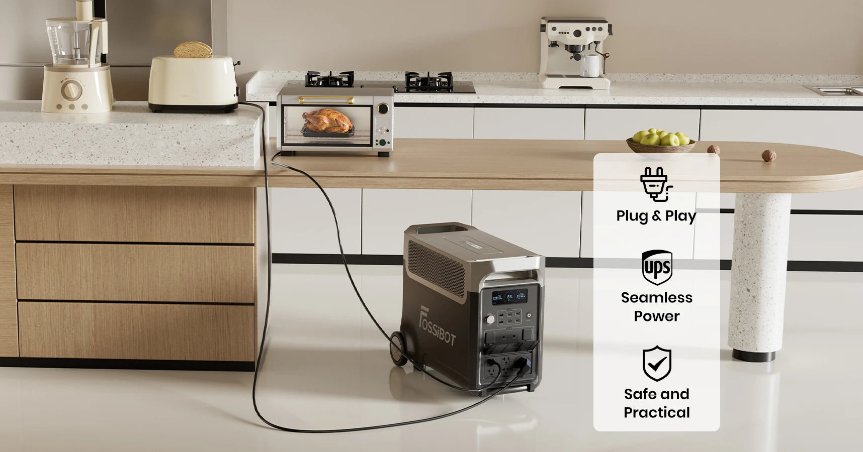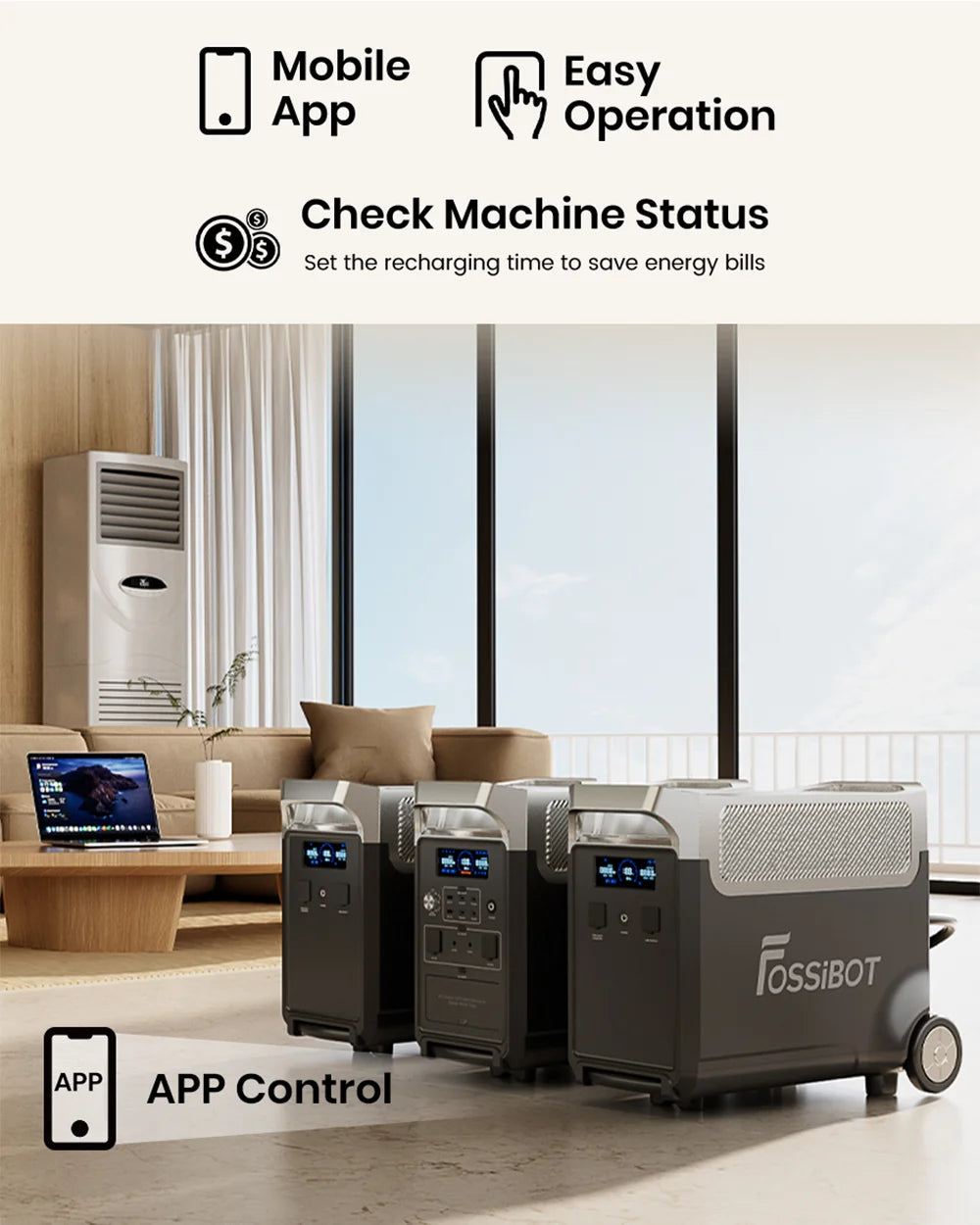 - 3.84kWh - 11.52kWh expandable capacity with up to 2 expansion batteries (FOSSiBOT FB3840) for extended power outages.