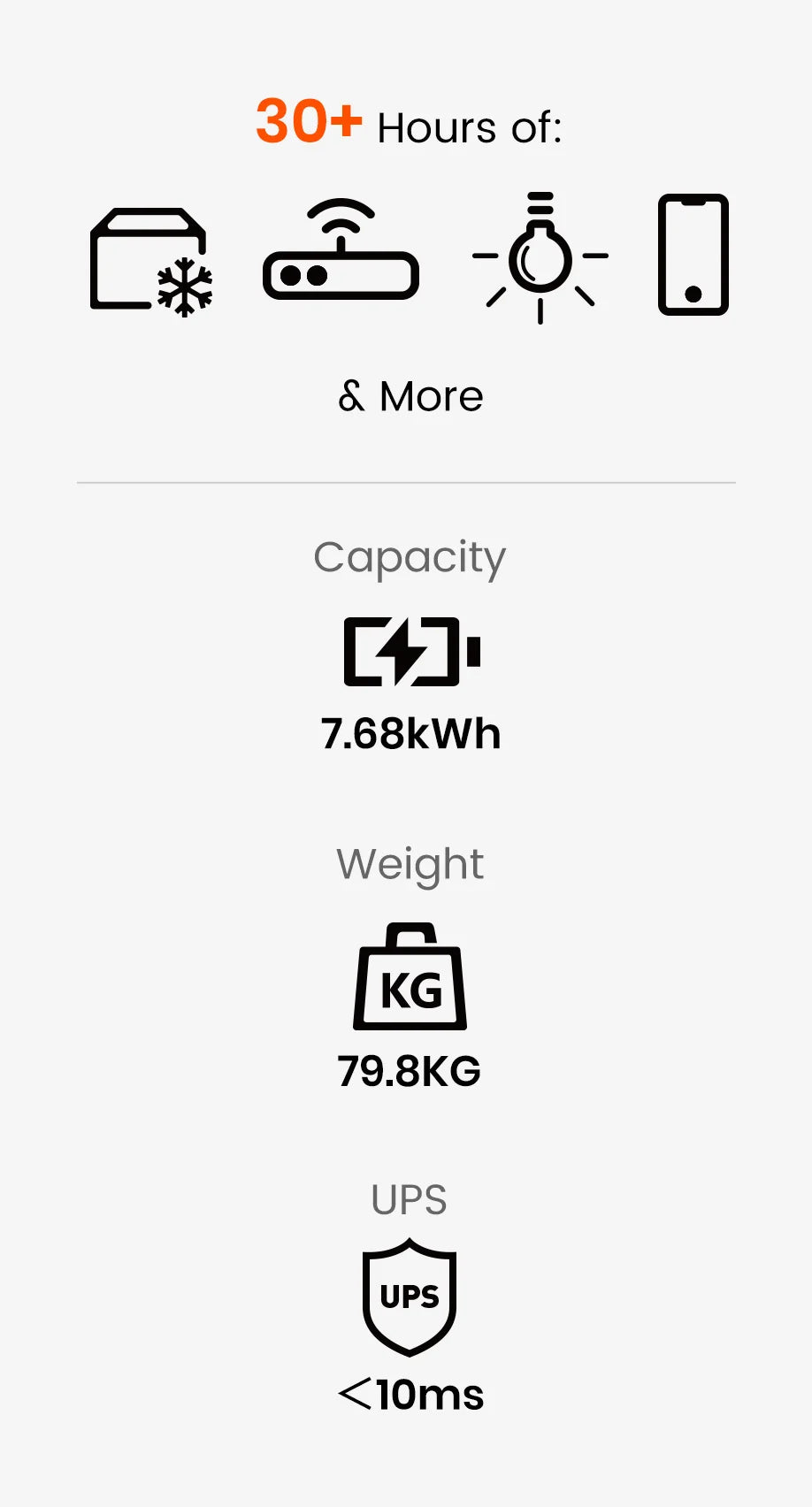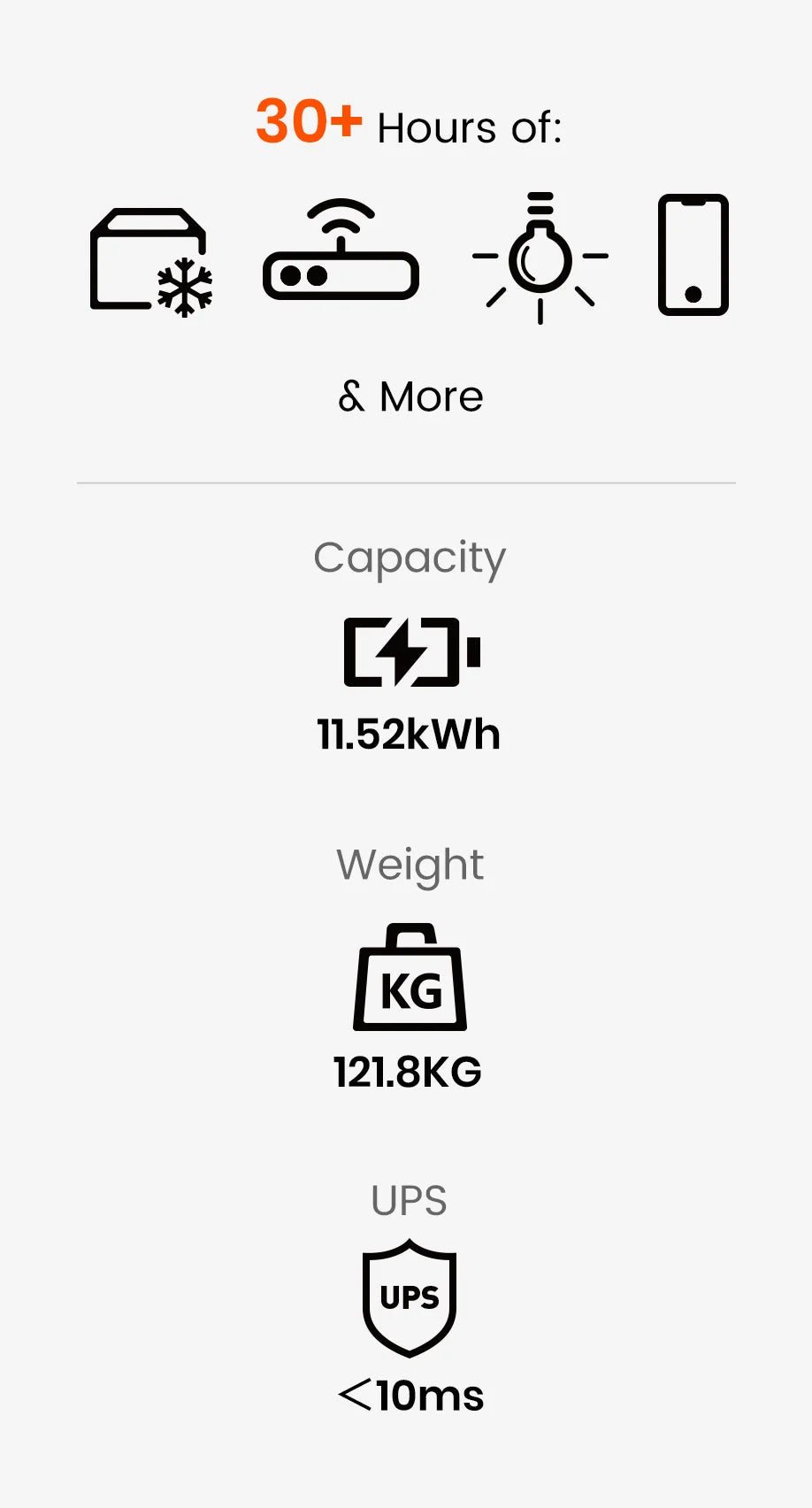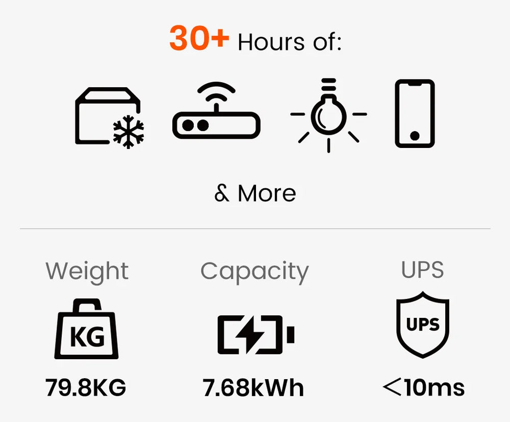 Food Stays Fresh, Even During a BlackoutDelivers 3600W of power for high-wattage appliances. Expandable capacity from 3.84 kWh to 11.52 kWh.