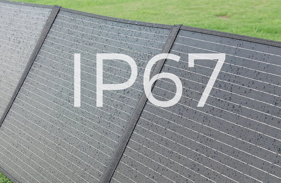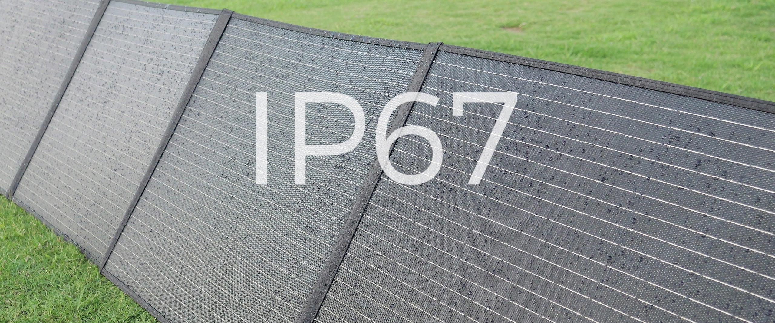 The solar panel is scratch and the sunlight generating side is IP67 anti-watersplash, perfect for camping, fishing, hiking and much more.(Prevent exposure to rain or no soak in water)